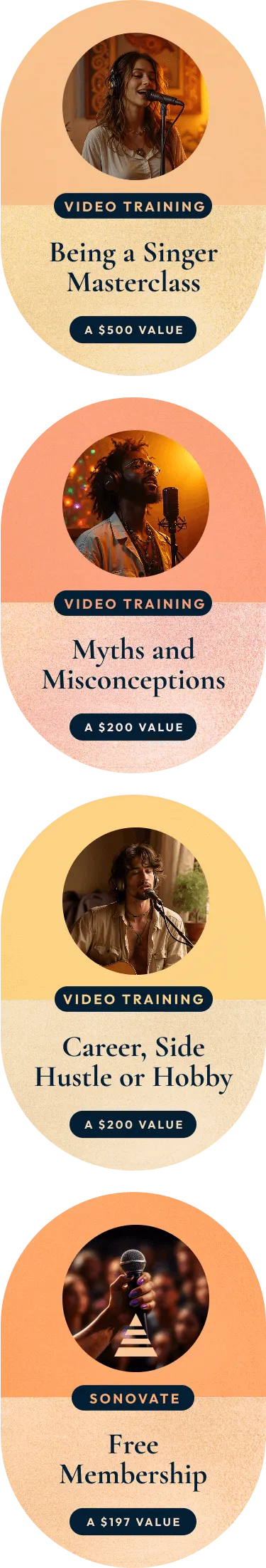 The combination of these free Masterclasses, SONOVATE and "The Singer's Mind Report" gives you the powerhouse of training you need to grow and reach your vision of your life as a singer and creative.